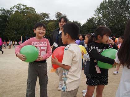 風船をもらった子ども達。放してしまわないようにね!