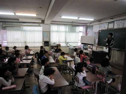 2年生の教室では,「今何をすべきかを考えて行動しよう」と板書した後,掃除時間には,先生がここをしてとか言わないので,自分で考えて掃除をしよう。先生もいっしょに黙って掃除をするからね。と話していました。