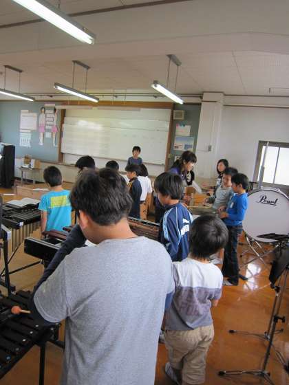 4年生は,椿先生と一緒に,もののけ姫の合奏に取り組んでいます。