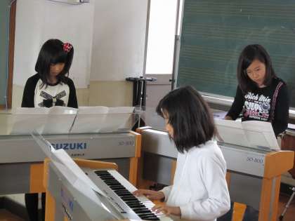 今日も音楽室で,それぞれのパートの練習をしていました。
