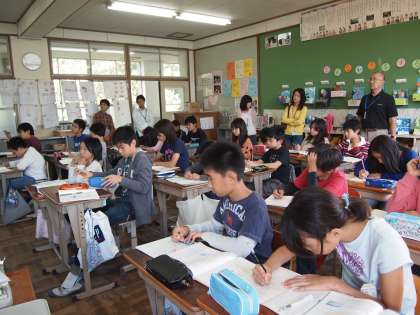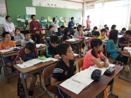 小中連携の取り組みの一環として,互いの授業を参観し合うというものがあります。今日は6年生の様子をおあぞらと6年1組・2組でそれぞれ参観されました。子どもたちはちょっと緊張しながらも授業に集中していました。