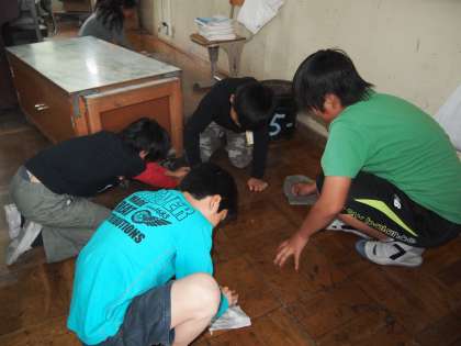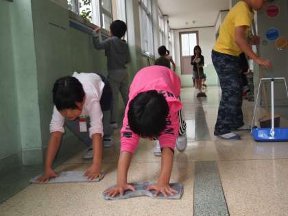 自問清掃が始まる前と明らかに違う光景を目にすることがあります。教室の床を雑巾で磨いている姿です。適当に床を拭いているのとは全く違う,まさに床を「磨いている」のです。このような自分と向き合う姿を見るとうれしくなります。