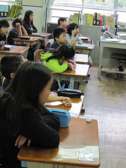 4年2組では道徳で,電車の中で席をゆずるかどうかについて話し合っていました。