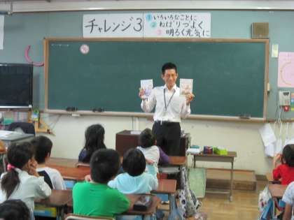 今朝は,3年生や6年2組などでブックトークを行いました。