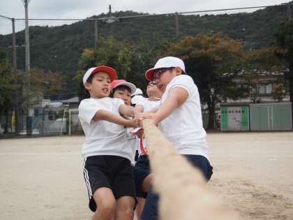 「どんなことを工夫したの?」と聞くと「後ろに行かんと前にかたまって引くようにする」,「縄をはさんでジグザグに並ぶ」等という答えが返ってきました。