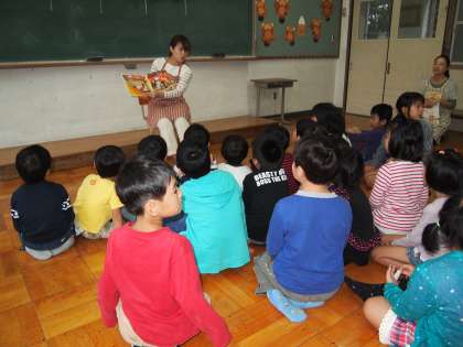 今日はパタポンの日。毎月2回,保護者や地域の方が来て下さって読み聞かせをしています。本校では本を閉じる時の音から「パタポン」という愛称がついているようです。
