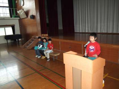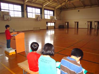 「きらめきタイム」の練習が始まりました。今日は登場の仕方や流れに乗っての移動の方法,声の大きさのイメージをつかむことなどについてアドバイスをしました。みんなとっても真面目に話を聞くことができて驚きました。だんだん上手になっていくのが楽しみです。
