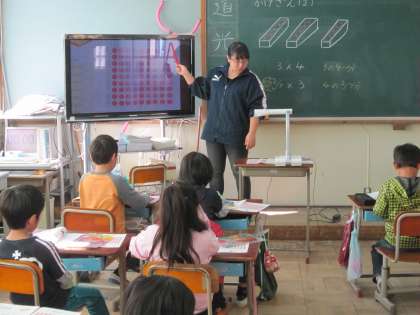 2年2組では,九九の4の段の学習をしていました。