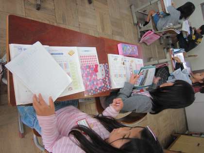 教科書の九九の意味をあらわすページを見たりしながら,4の段について学習していました。