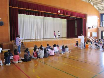 1年生は,学芸会で「おむすびころりん」という題の劇をします。