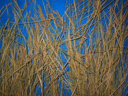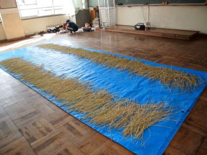 5年生が先日収穫したお米,今,教室の隣で干してあります。さて,どんなご飯が炊けますやら…。