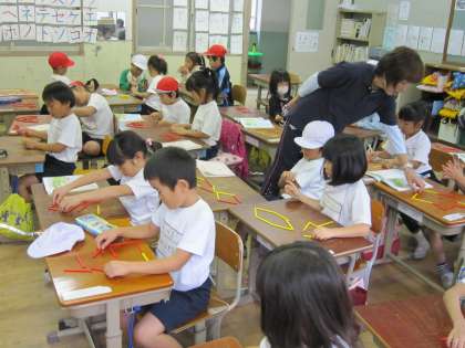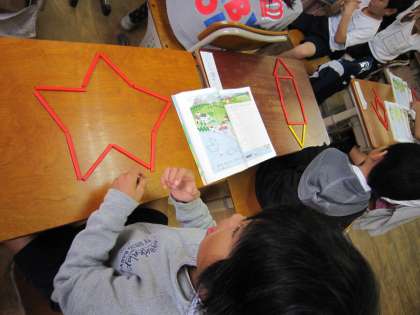 1年生は,算数で形づくりの学習をしています。