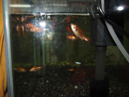 職員室前に2つの水槽があります。毎朝餌をやってくれている子がいますが,金魚やメダカは喜んで食べに来ています。しっかり食べて大きくなってほしいですね。