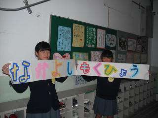 10月29日(火)から11月1日(金)まで,松尾中学校から女子中学生2名が生き方探究・チャレンジ体験で本校に職場体験に来ています。今日は朝から学芸会のプログラムを印刷したり,児童会のなかよし目標の掲示物を作ったりしてくれました。また,休み時間には子ども達と仲良く遊んでいる姿が見られ,小学生も大喜び。明日からのさらなる活躍に期待しています。