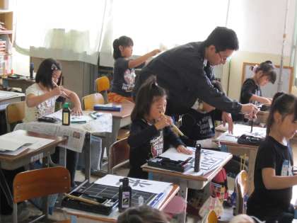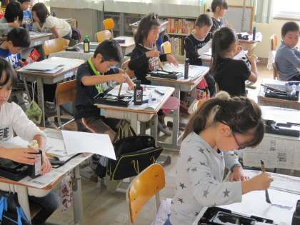 お手本を見ながら,とめや払いに気をつけて書いていました。