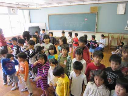 1年生は,今日の5校時に生活科室で学芸会の練習をしていました。