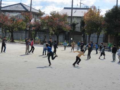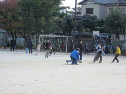 中間休みに運動場を見ると,寒い中元気に遊ぶ多くの子ども達がいました。ボール遊びや追いかけっこ,遊具での遊びと寒さを吹き飛ばすように体を動かしていました。