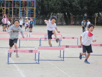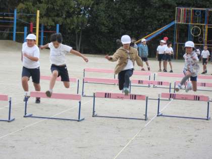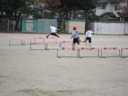 4年生は,体育でハードル走に取り組んでいます。