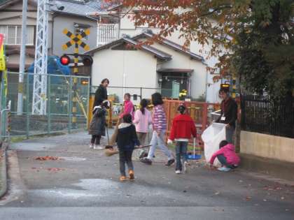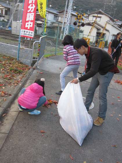 今日11月13日の放課後,子ども文化部の子ども達が,落ち葉集めをしていました。