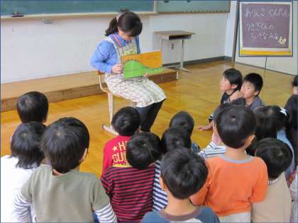 集まった子ども達は,絵本を見つめながらお話を聞いていました。