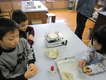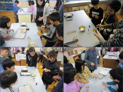 4年生は,これから理科室での観察・実験が多くなります。今日は,実験用コンロとアルコールランプの使い方の練習をしていました。