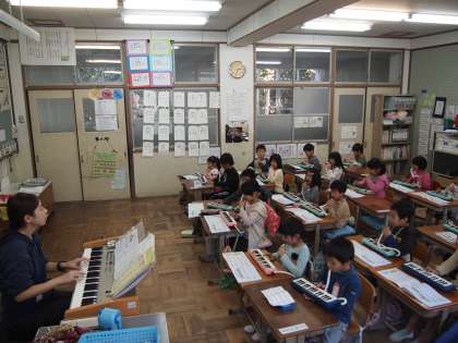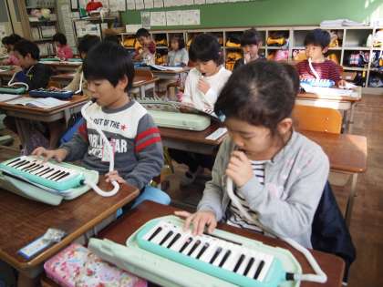 1年2組も『よろこびのうた』を演奏していました。一人ひとりの指使いを見ているとずいぶん上達したようです。