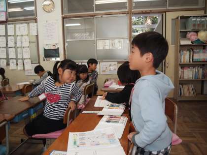 担任の先生が「みつけ玉はどうでしたか?」と言うと,「後ろのところをやりました」と喜んで発表していました。