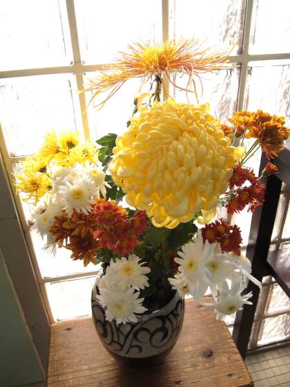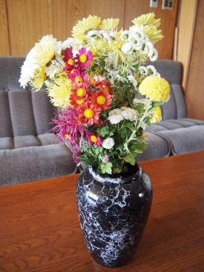 地域の方から菊をいただきました。丹精込めて育てられたものだと思いますが,秋の深まりを感じさせてくれます。職員室前と校長室に置かせてもらいます。ありがとうございました。