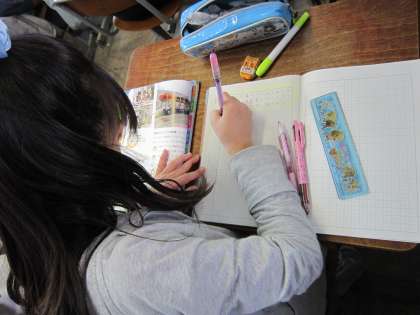 子ども達は資料をもとに考えていました。