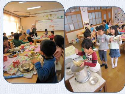 今日の献立には,ラーメンがありました。子ども達は音を聞きながらもしっかりと食べ,早い子はおかわりもしていました。