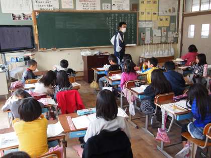 2年1組は国語の時間。「分かりやすくせつめいしょう」ということでおもちゃの説明書についていろいろ考えていました。将来のプレゼンテーションの力にもつながっていく学習です。