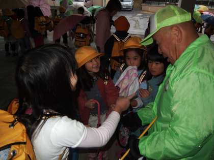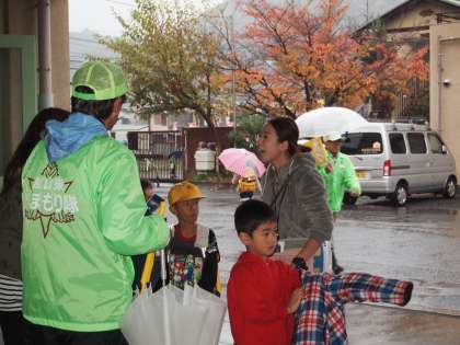 本降りの雨の中,見守り隊の方が今日もお迎えに来て下さっています。子どもたちとじゃんけんで盛り上がっている場面も見られました。何気ない当たり前の光景として流れていってしまいそうですが,私おたちは感謝しなければいけませんし,「ありがとうございます」と自分から言える子になってほしいと願っています。