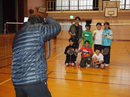 バトミントンクラブの6年生は卒業アルバム写真の撮影をしていました。