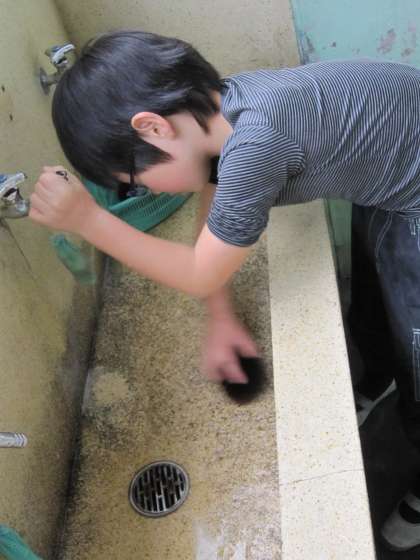 今日はどんな玉を磨いているかと,掃除時間に校内を回りました。