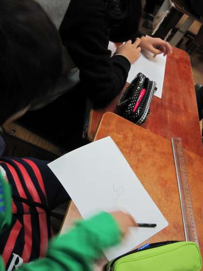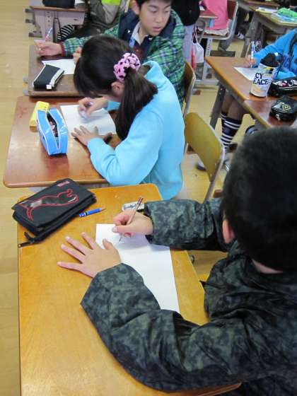 ポーズを友達にとってもらって,描いている子もいました。