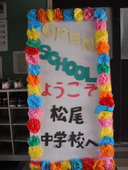 校内を回っていると,オープンスクールのために松尾中学校が準備されたものが目に入りました。ありがとうございました。