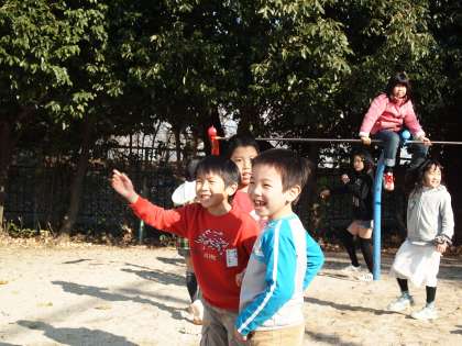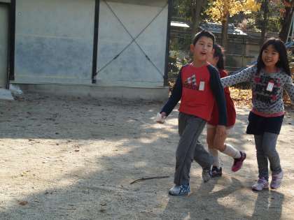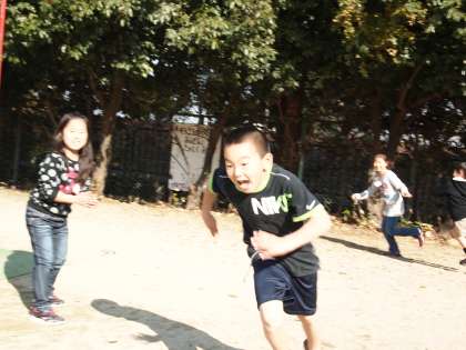 鬼ごっこをしているのは2年生。「楽しくてたまらない」という表情でした。