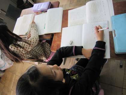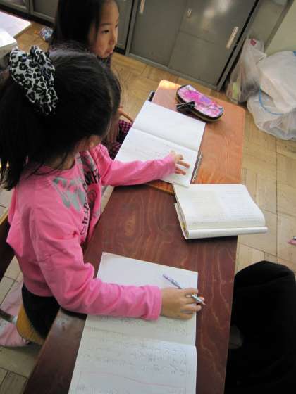 今日はわたしはおねえさんを読んで「・・・・・・・」というところが心に残りました。という文型を決めた作文を書いていました。
