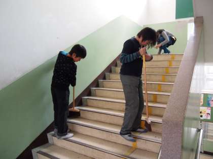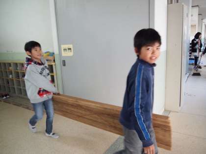 今日は参観なので体育館から長椅子を運んでいる人もいました。