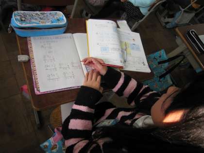 2組では,学習した成果を確かめようと練習問題に取り組み,答え合わせをしていました。
