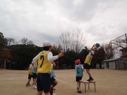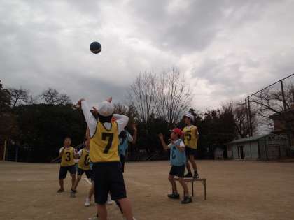 4年2組はポートボールです。なかなかいい雰囲気でやっていました。ジャッジがややこしくなった時には落ち着いて話し合うことがでkりていたので成長のあとがうかがえました。パスをもらった後すぐにパスができるようになるとゲームにリズムが出てきますね。