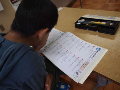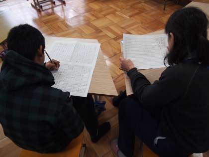 あおぞら学級の二人は集中して課題に取り組んでいます。3年生は漢字練習に6年生は卒業アルバムの文集に…。