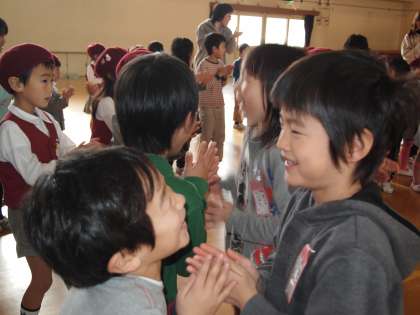 はじめのゲームは,何というか…「指定された数のグループを素早く作って座るゲーム」です。
