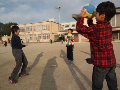 朝日を体いっぱいに浴びて友だちと走り回ったりおしゃべりしたり…。今日はどんないいことがあるのでしょうね。