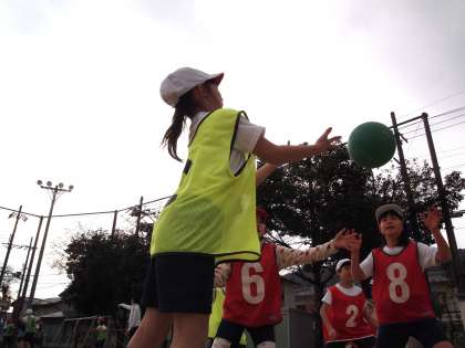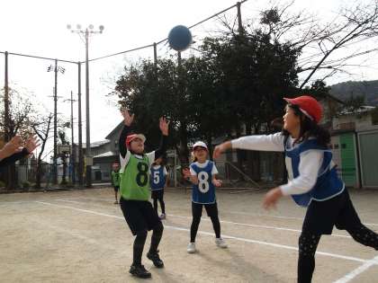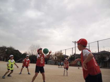 3年生は「エンドボール」の時間。ボールをもらってからパスをするまでに時間がかかってしまいます。また,ジャッジをめぐってのトラブルも多いのですが,それもまた勉強です。横で見ているとほほえましく感じます。