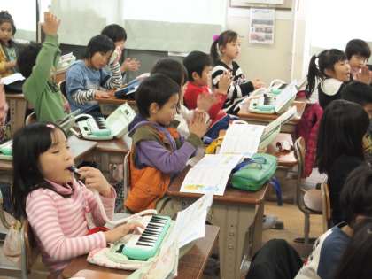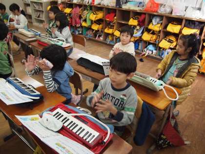 1年1組は『よろこびのうた』を手拍子とけんばんハーモニカで合わせました。みんなずいぶん上手になりましたね。