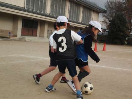 2年生は初めての試合だそうです。ボール運動に小さいトラブルはつきものです。そのたびに試合がストップして「話し合い」になることもしばしば…。こういう経験を積み重ねてたくましくなってほしいです。