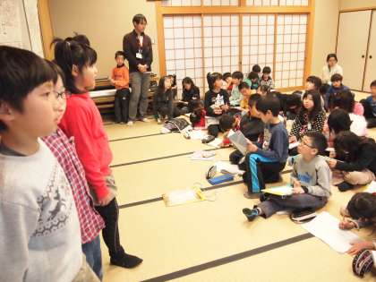 3年生の総合的な学習の発表を聞かせてもらいました。京都の歴史や文化について身近なことから調べていこうという総合的な学習の時間です。十三参りについて発表している班がありました。知らないことも聞いたので質問がたくさん出ていました。