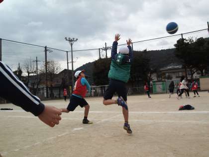 4年生はエンドボールの時間です。前回の反省を生かして少しパス回しが早くなってきたでしょうか?