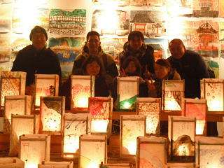 12月18日(水)雨が静かに降る中,森先生プレゼンツ「花灯路を見にいこう会」が開催されました。初めに阪急嵐山駅に行って,PTA本部さんによって掲示された子ども達の作品を鑑賞しました。ライトアップされた子どもたちの絵は,幻想的な雰囲気に包まれていました。